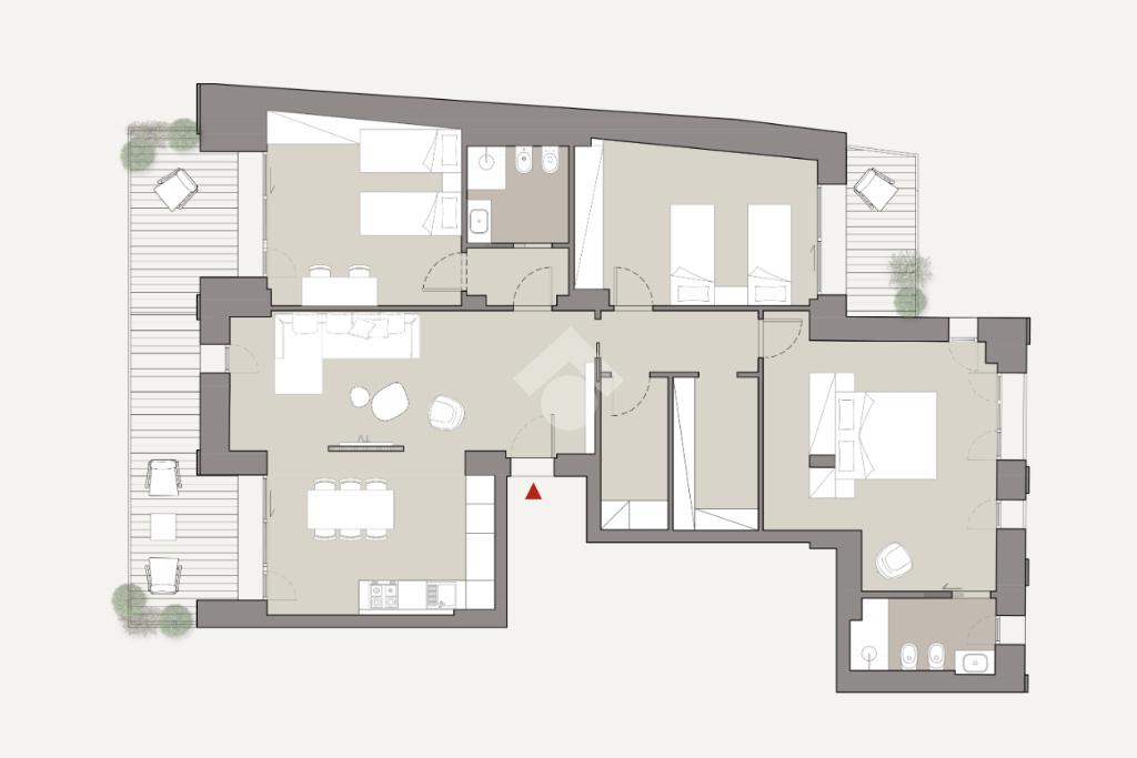 L'appartamento è dotato di impianto di riscaldamento a pavimento, raffrescamento ad aria, domotica e predisposizione impianto allarme.